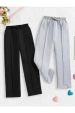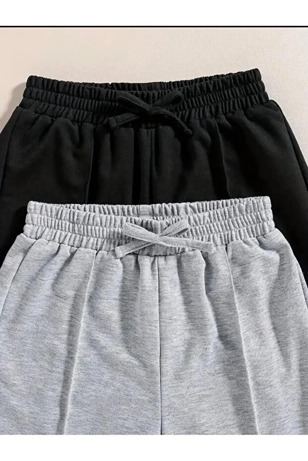 MNK SPORT SİYAH VE GRİ 2 ADET KADIN BOL PAÇA EŞOFMAN ALTI MEVSİMLİK