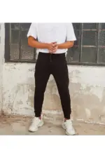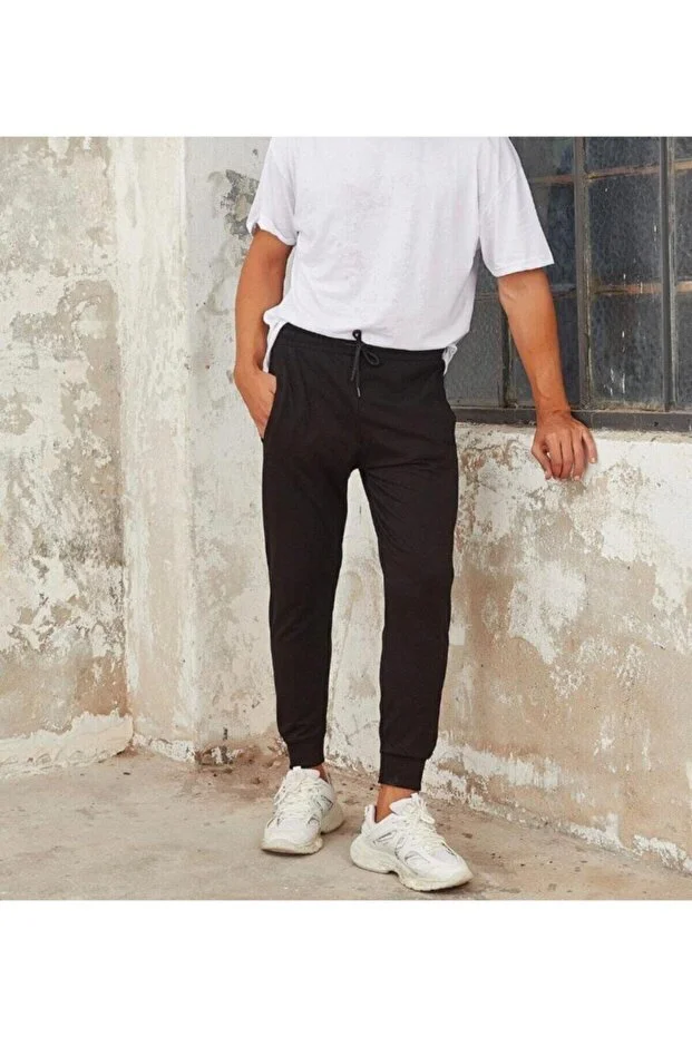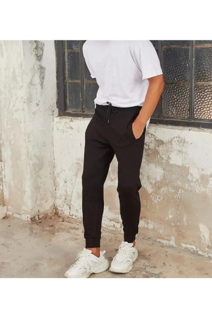 Unisex Erkek Siyah Dar Paça Jogger Eşofman Altı RIBANALI